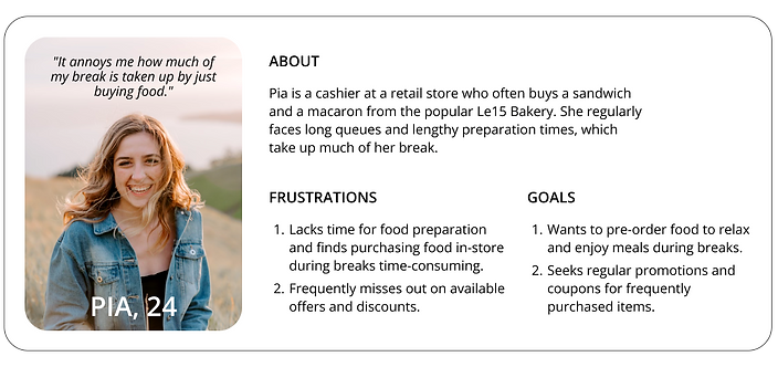 The research findings showed that busy working adults were the primary user group. They wanted to use their break time for rest and enjoyment of bakery items without visiting the store physically. They were also keen on information about special promotions, safety measures, and item quality.