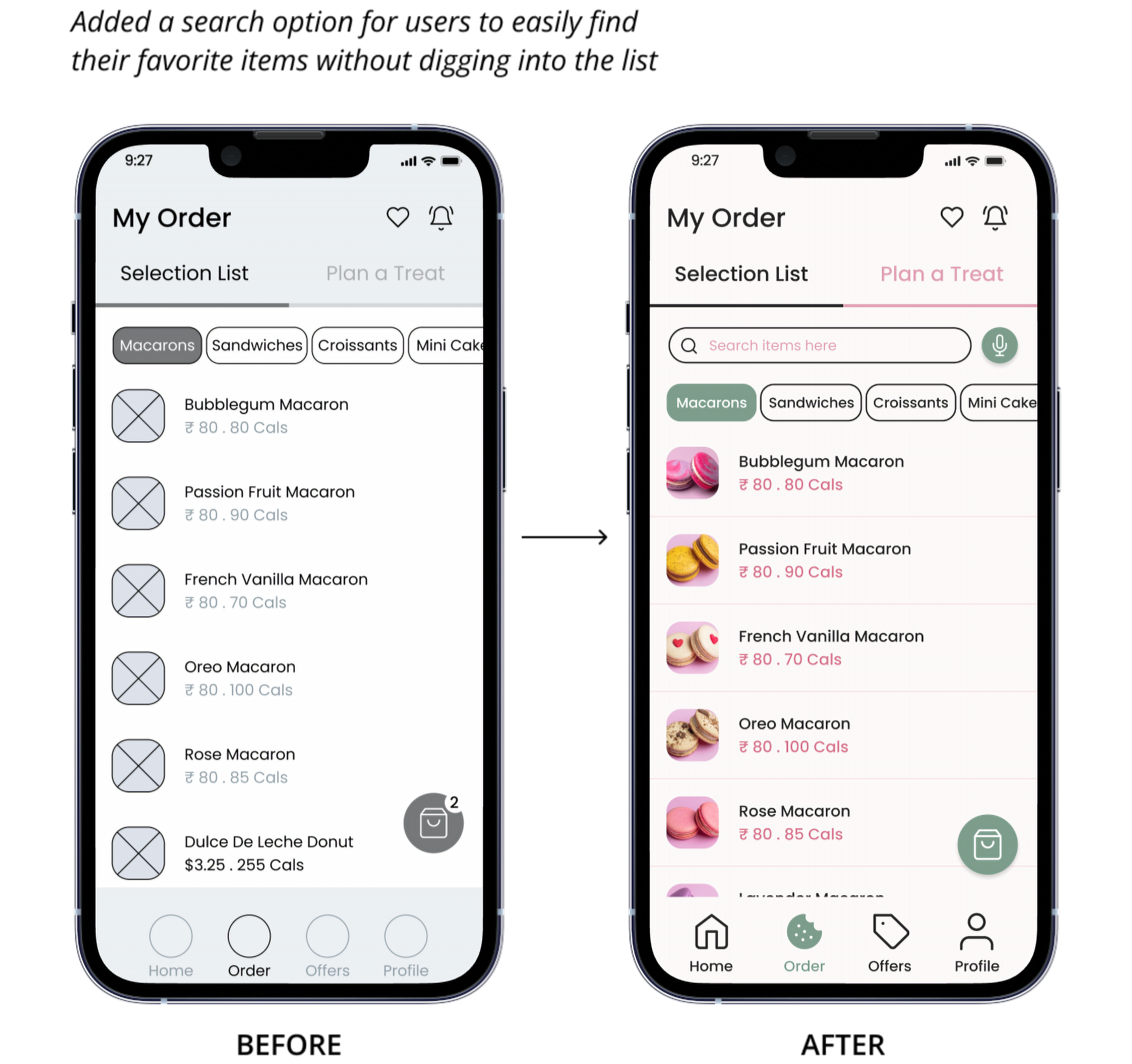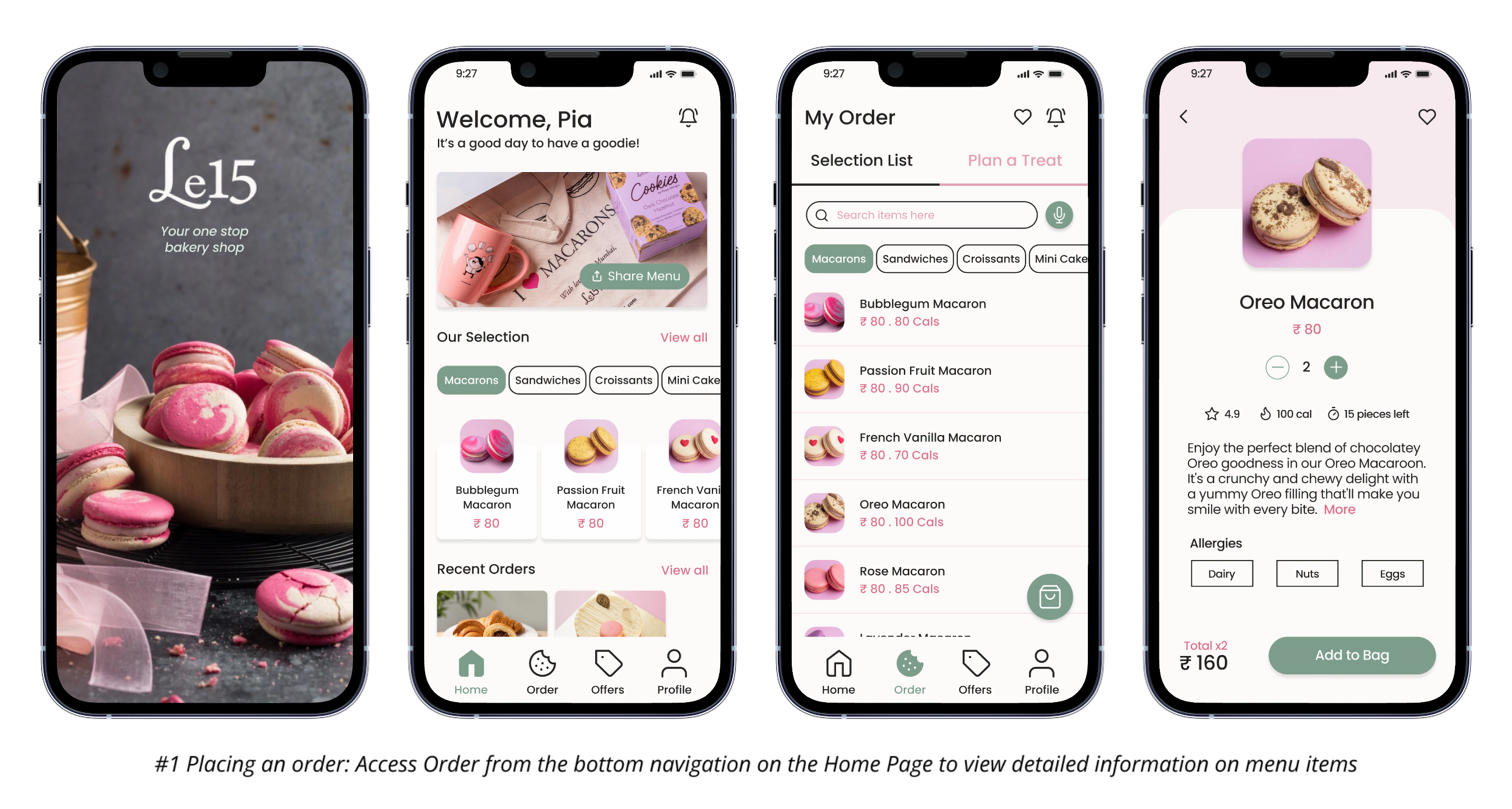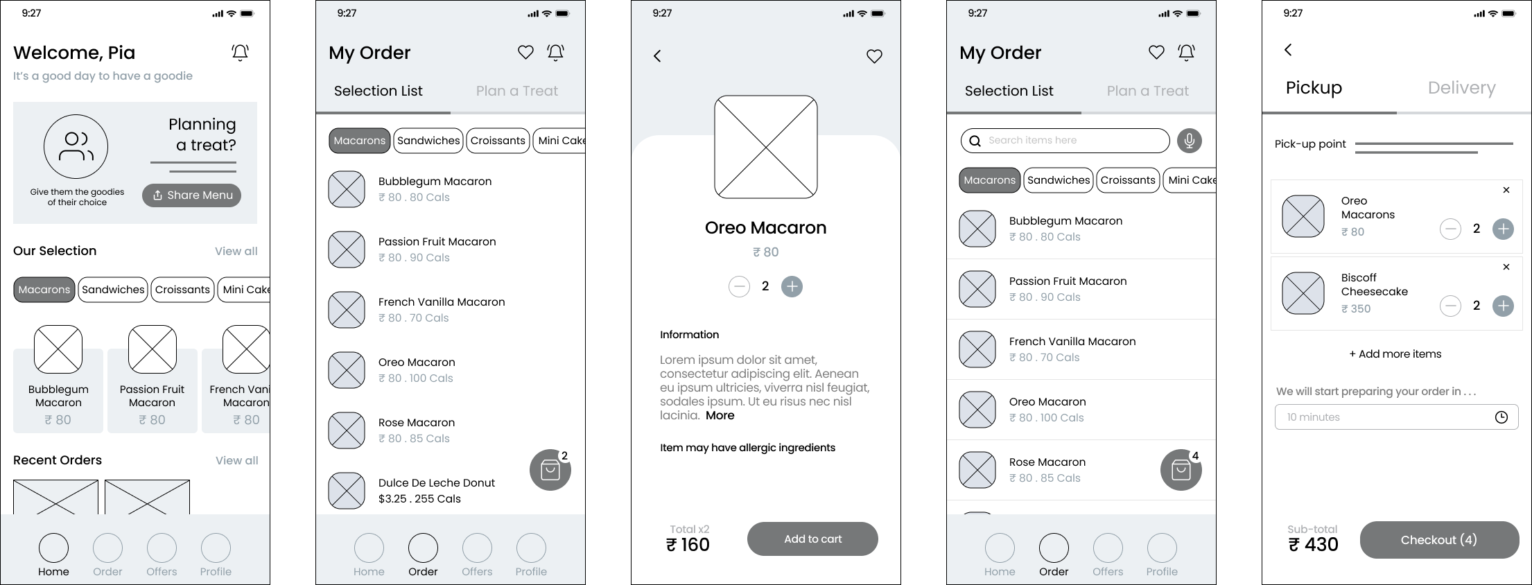 I designed a mobile app for online bakery ordering with a unique feature that allows users to treat friends and family to their chosen items by sharing the menu and placing group orders.
